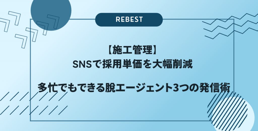 【施工管理】SNSで採用単価を大幅削減!多忙でもできる脱エージェント3つの発信術